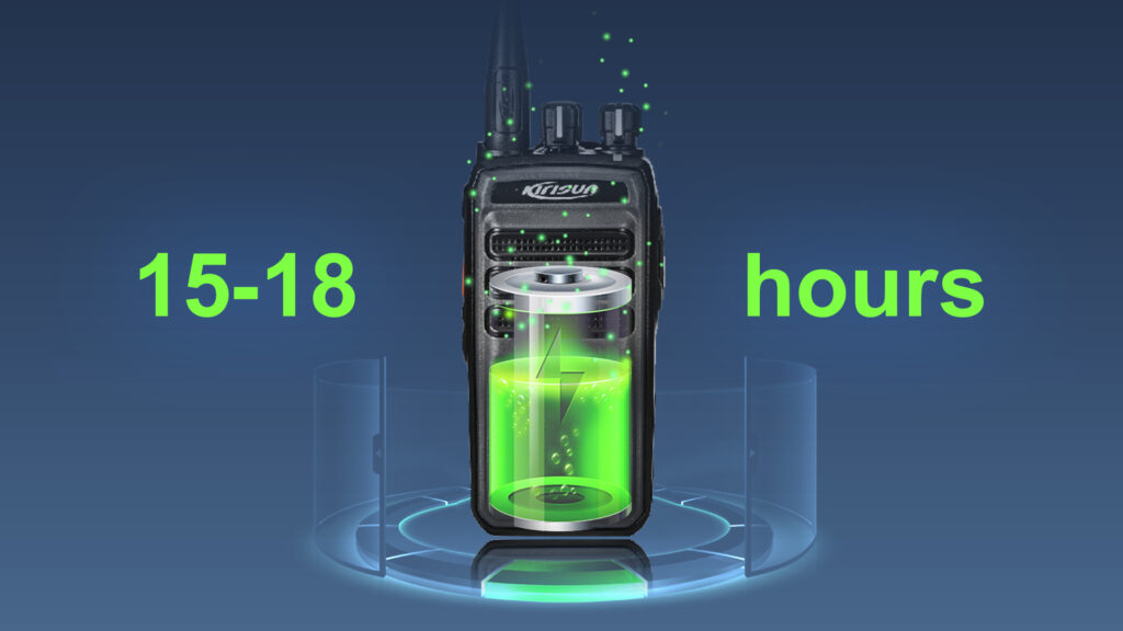 TDMA tehnologija i ugrađena funkcija uštede energije omogućuju znatno dulji rad uređaja. Opremljen standardnom baterijom kapaciteta 2000 mAh, model DP405 osigurava između 15 i 18 sati rada u standardnom radnom ciklusu (5-5-90).
